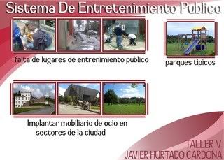 Esta propuesta la realice pensando en la poca diversión mobiliaria que hay dentro de las ciudades para los adultos. Ya que casi todas las propuestas y estructuras de ocio, si no es que son todas, están realizadas y pensadas en mobiliarios infantiles. Con este proyecto que son una serie de trampolines que están separados uno a otro. Requiere de agilidad y destreza, también cuenta con unos lanzadores de chorros de agua que van de un lado a otro y que los adultos tienen que ir esquivando para evitar ser mojados. Este sistema de entretenimiento permite a los adultos pasar un rato de ocio y entretenimiento moderno e innovador, permitiéndoles recordar esa infancia ya vivida. Con esto pretendo hacer un mobiliario nuevo que va dirigido para un sector que nunca se había incursionado, en cuanto a ocio en este tipo de casos.